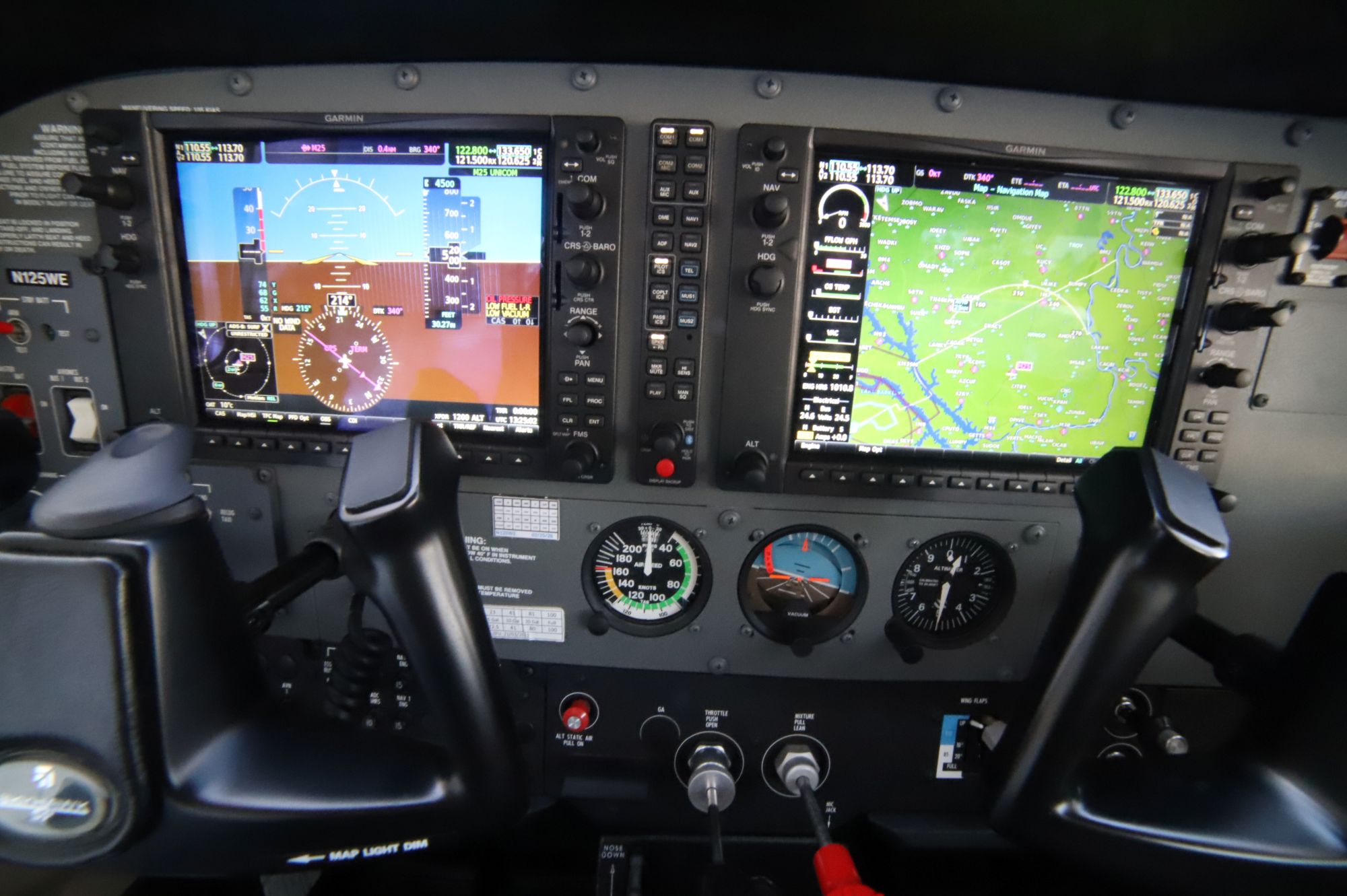 Garmin G1000 Integrated Avionics Suite w/ NXi Garmin GMA-1360 Digital Audio Panel w/ Bluetooth/3LMB/4 Place Intercom System w/ Aux Audio Input Garmin GIA-64WAAS GPS/Nav/Comm w/ Glideslope (#1) Garmin GIA-64WAAS GPS/Nav/Comm w/ Glideslope (#2) Garmin GTX-345R Digital ADS-B in/out Transponder (FIS-B subscription free weather and traffic.) Garmin GDU-1054B Primary Flight Display “PFD” Garmin GDU-1054B Multi-Function Display “MFD” Garmin Flight Stream 510 Wireless Connectivity Garmin GDC-74A Air Data Computer “ADC” Garmin Terrain Garmin SafeTaxi Garmin FliteCharts Garmin/Cessna 172S Digital Checklist (displayed/controlled on MFD) Pilot/Copilot Control Wheel Push-to-Talk Switches Avionics Master Switch *Some avionics require activation and/or subscription fees.
